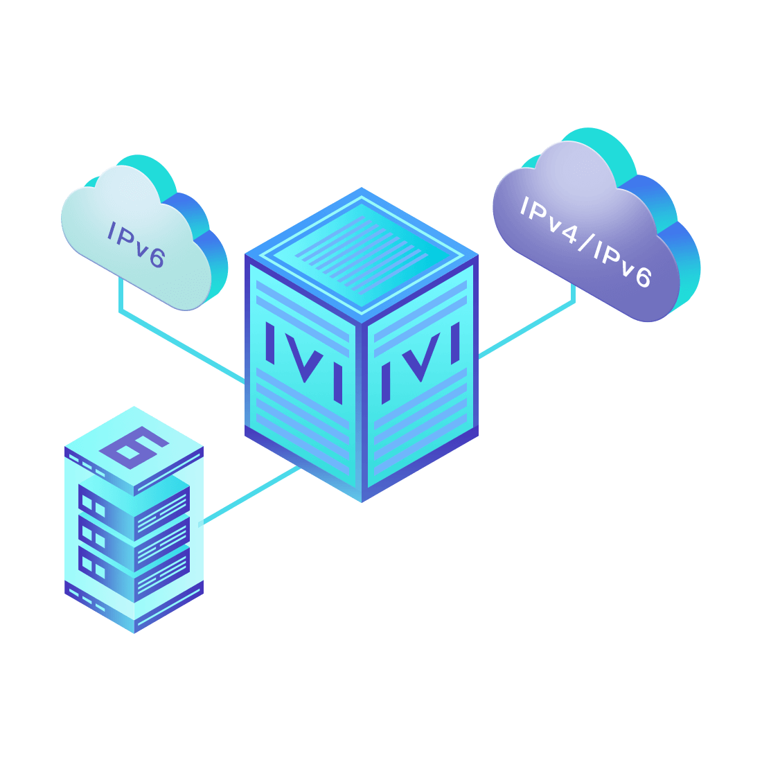 對正在進(jìn)行IPv6整體升級規(guī)劃的運(yùn)營商,應(yīng)用IPv6升級方案2.5,通過IVI無狀態(tài)翻譯技術(shù)和純IPv6接入網(wǎng)絡(luò),為雙??蛻舳撕碗p棧服務(wù)器提供連通服務(wù)。
